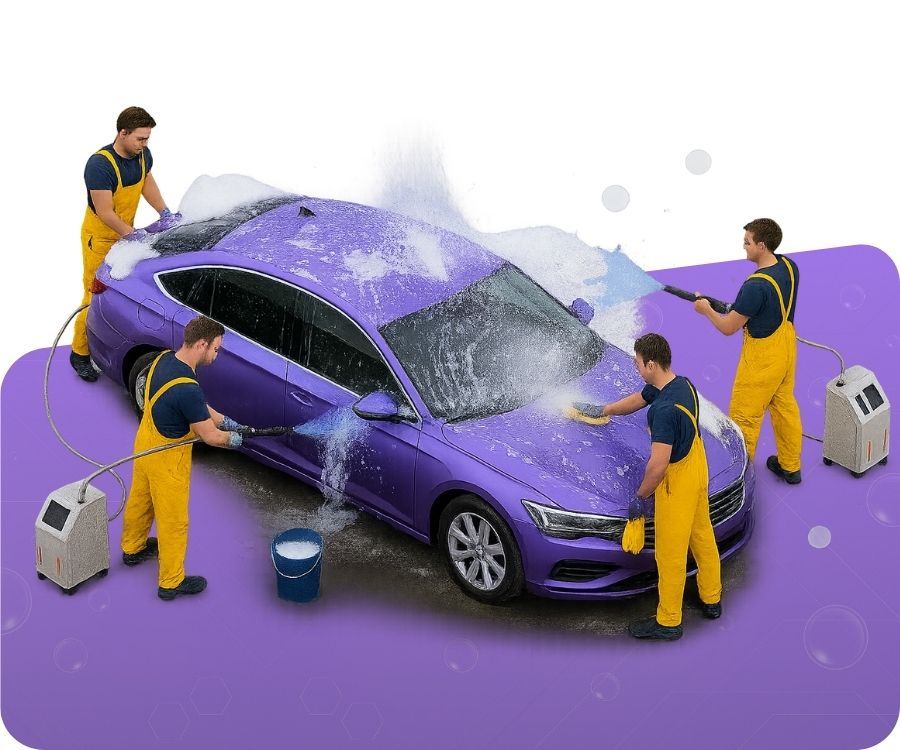 تنظيف شامل لجسم السيارة الخارجي باستخدام مواد عالية الجودة تضمن لمعان السيارة وإزالة الأتربة والأوساخ بسرعة وكفاءة.